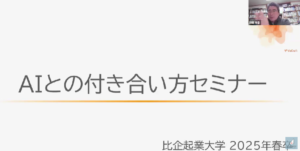 2025年10月24日(金)18時~20時、比企起業大学25秋「10月ゼミ」を開講しました。講師陣、学部生との意見交換の場です。今回は、4名の学部生が参加しました。
