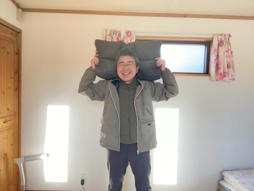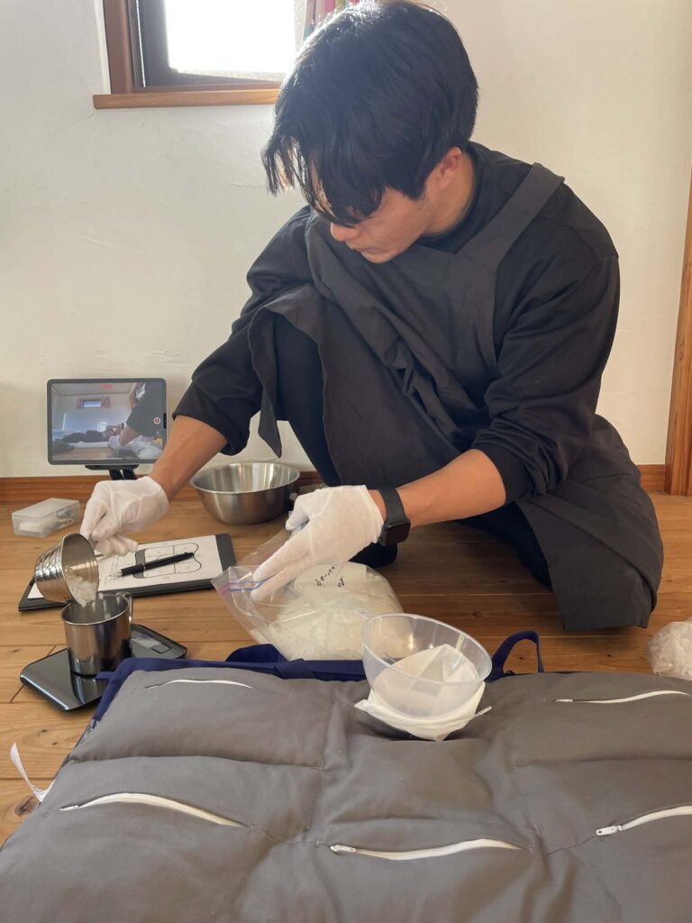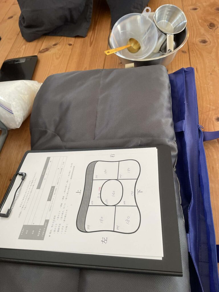 当日は、拙宅にお越し頂き、普段使っている寝具に合わせて、オーダーメード枕を作ってもらいました。