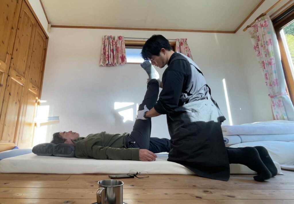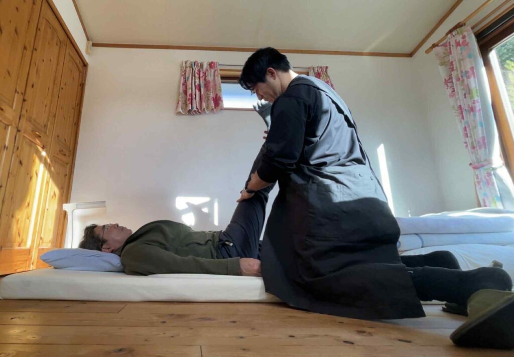 動画で、寝てる姿勢、股関節や肩の可動域を確認しながら、進めます。